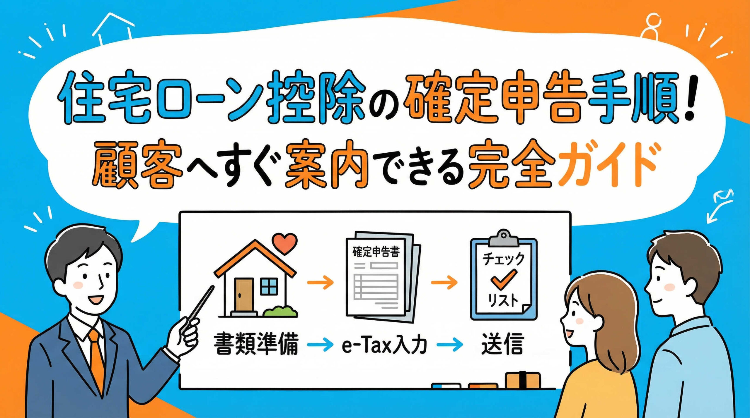 この記事では、お客様へのご案内や配布資料の作成にそのまま活用いただけるよう、確定申告で住宅ローン控除を受けるための手順を体系的に整理いたしました。